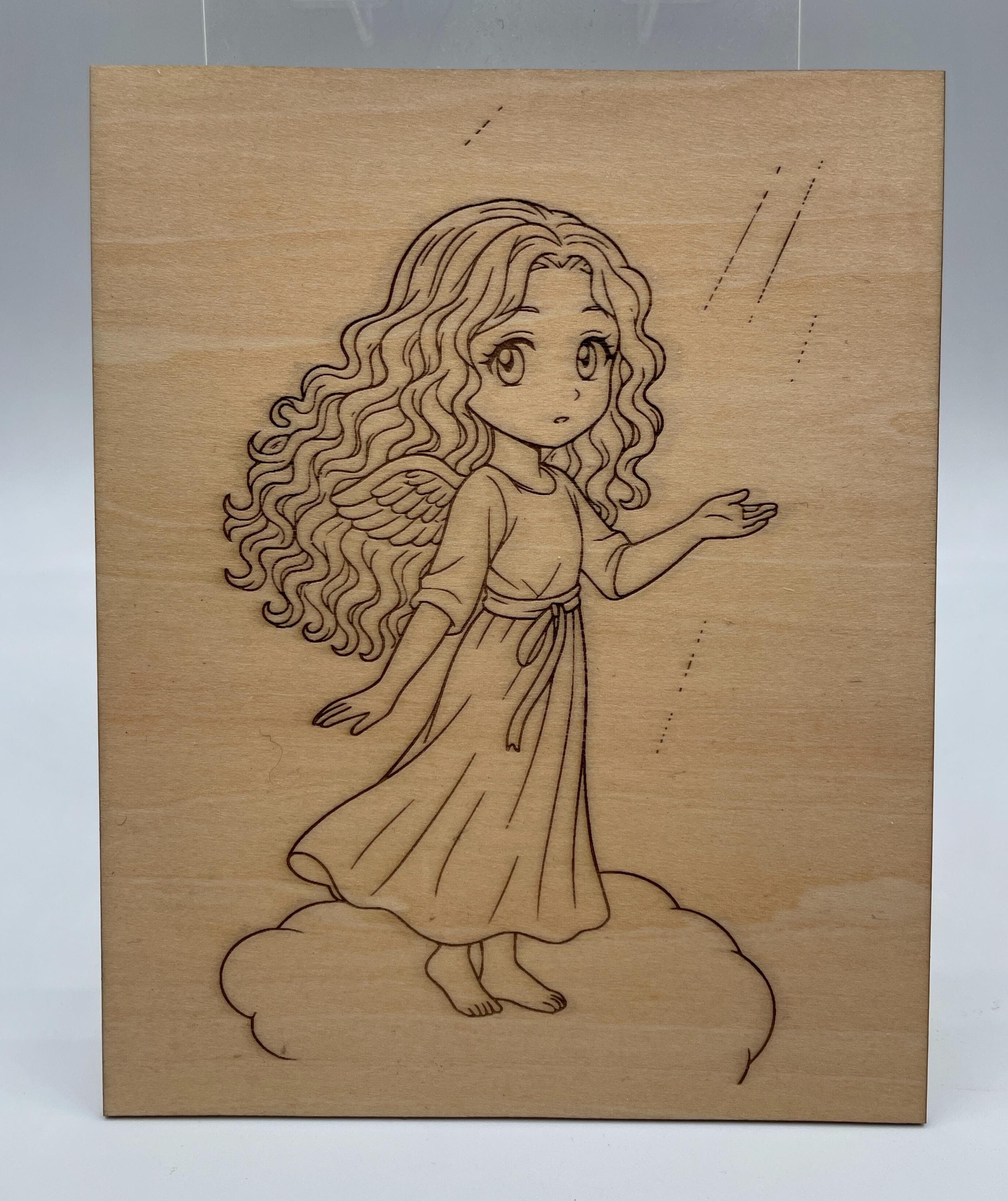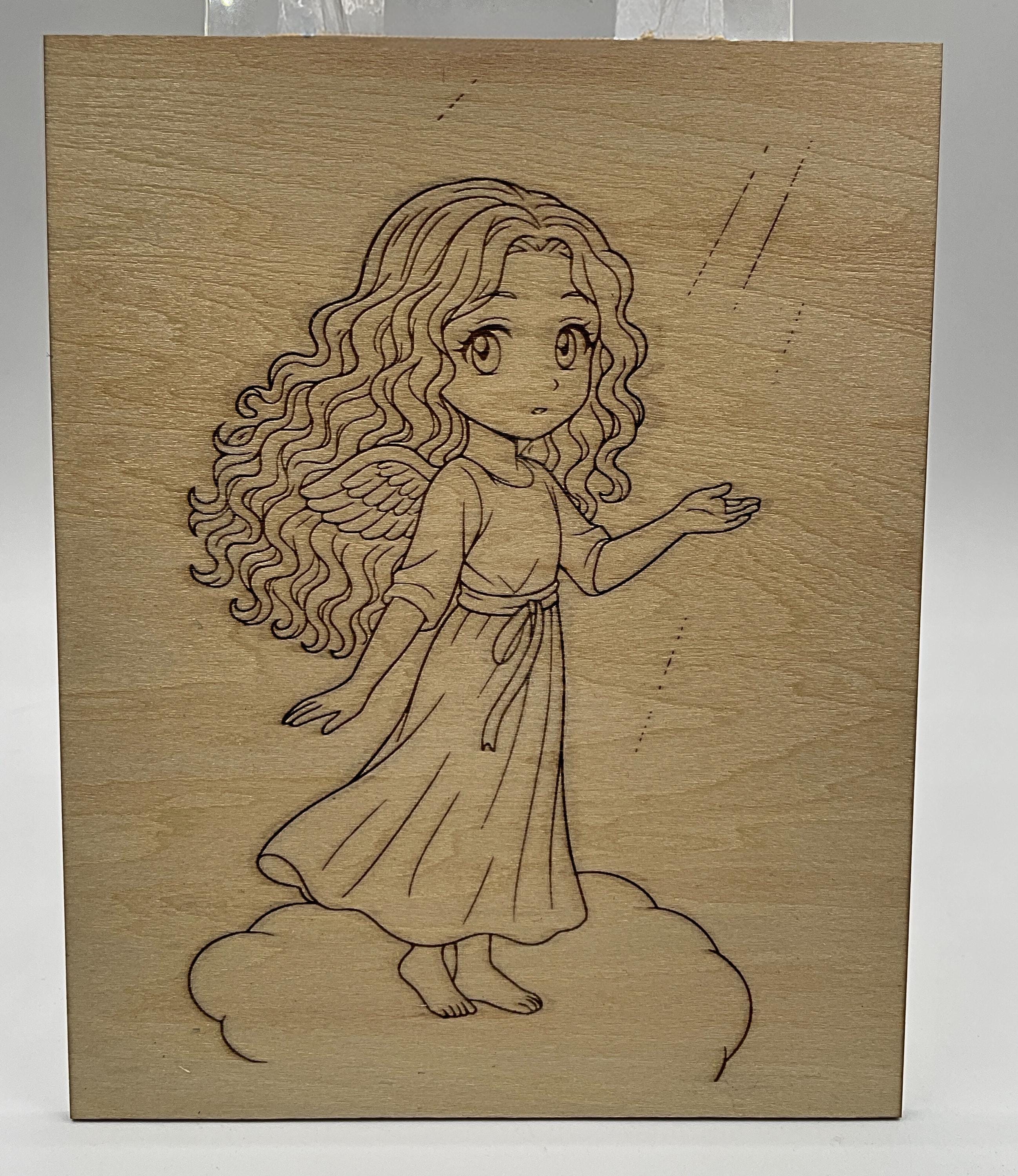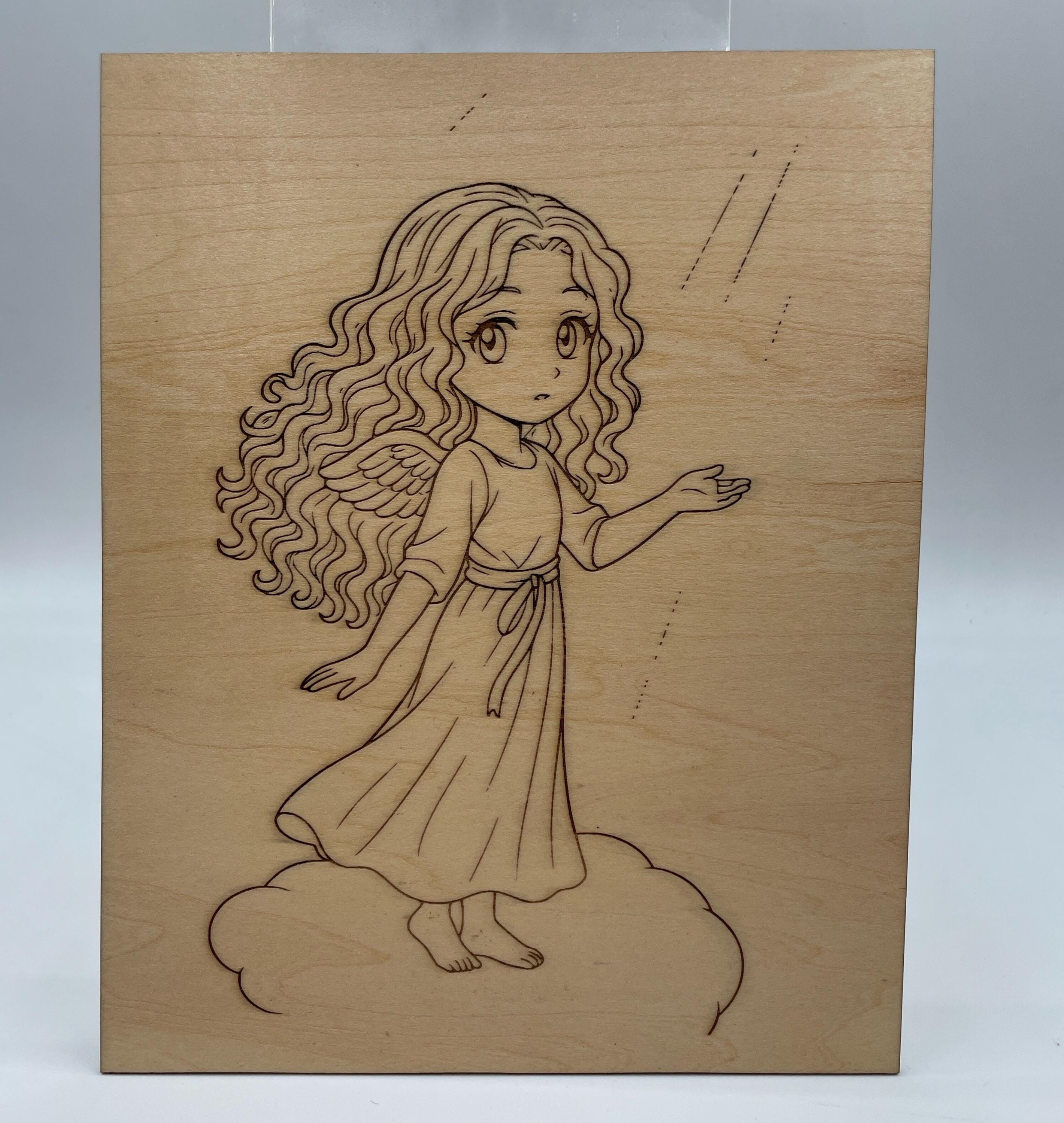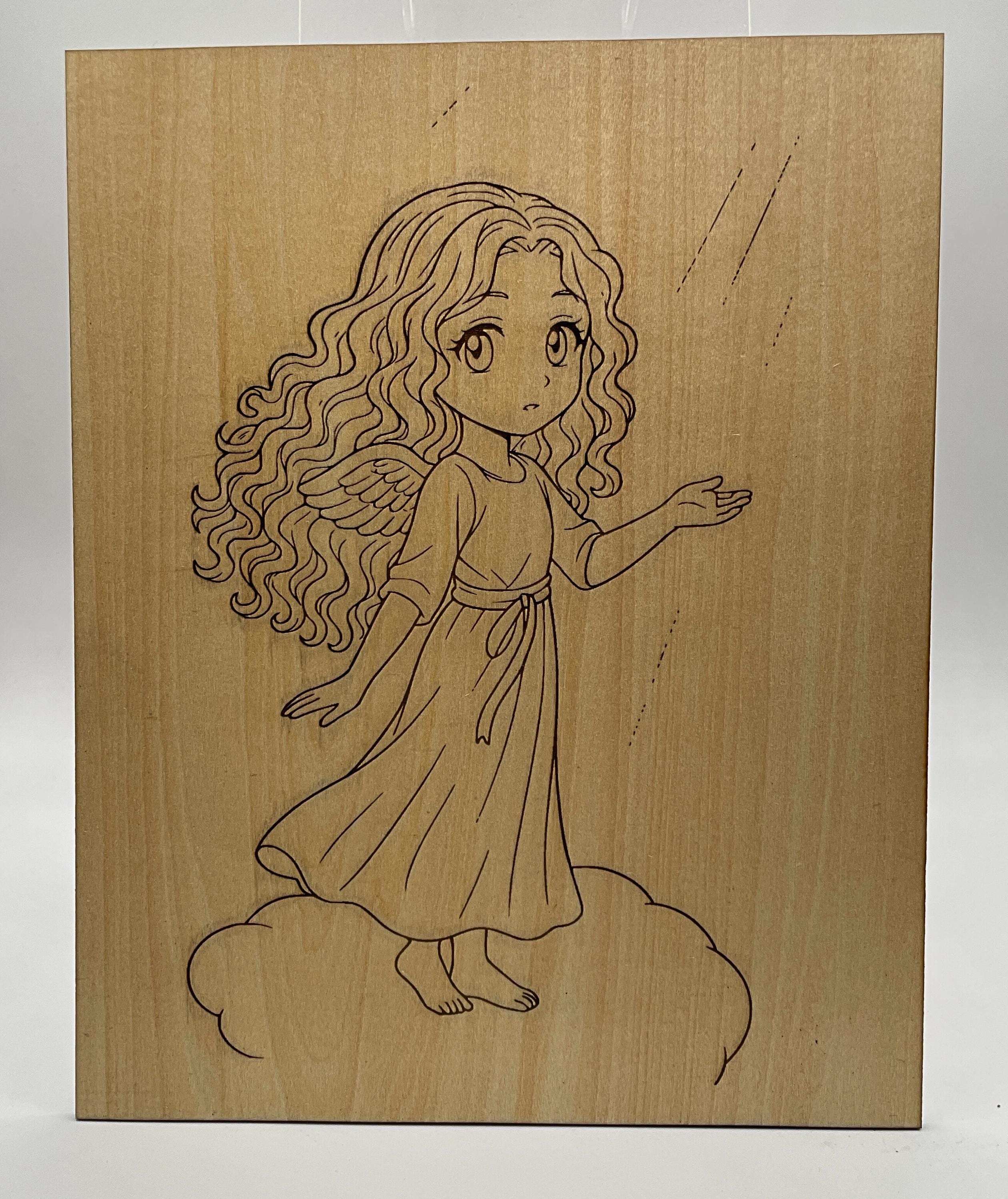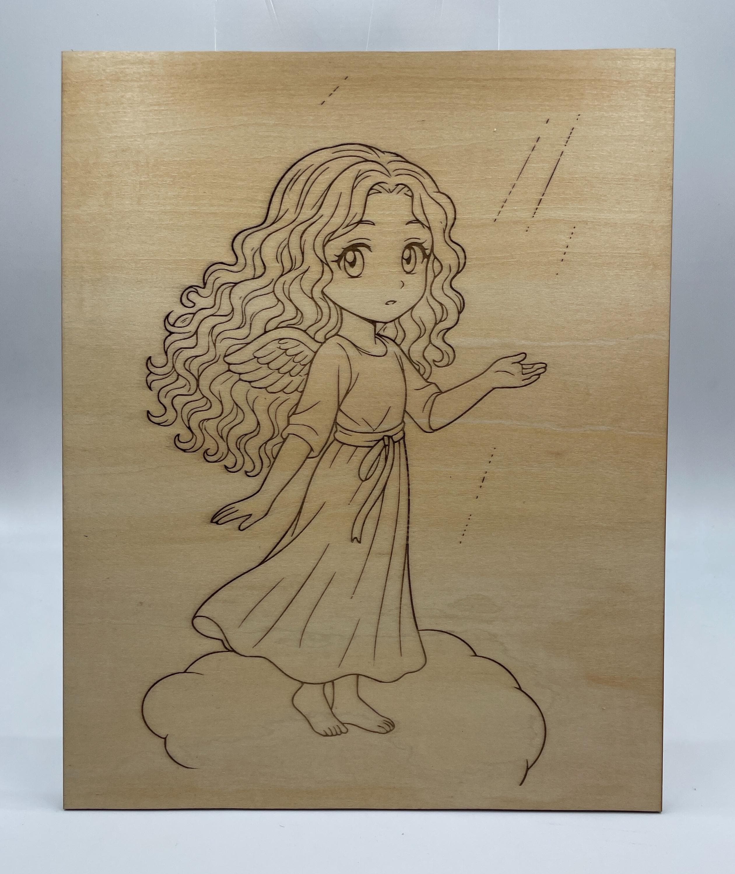 “Little Angel Light” is a peaceful wood coloring panel created to bring comfort and creativity right into your hands. Designed by Kai Scott Legacy, this sweet chibi angel stands on her cloud with gentle rays of light surrounding her—an invitation to pause, breathe, and color your worries away.