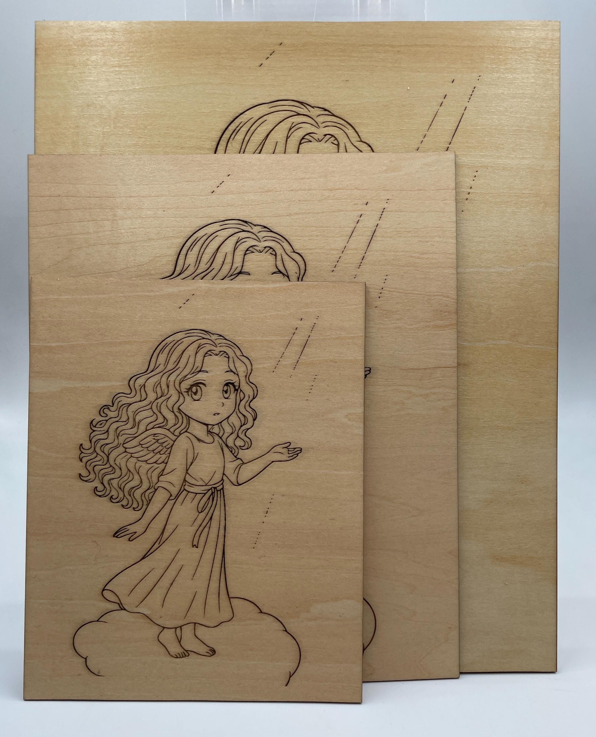 All panels are engraved into natural basswood and hand-primed for the best coloring experience. Panel sizes are close but approximate due to lasering discrepancy.