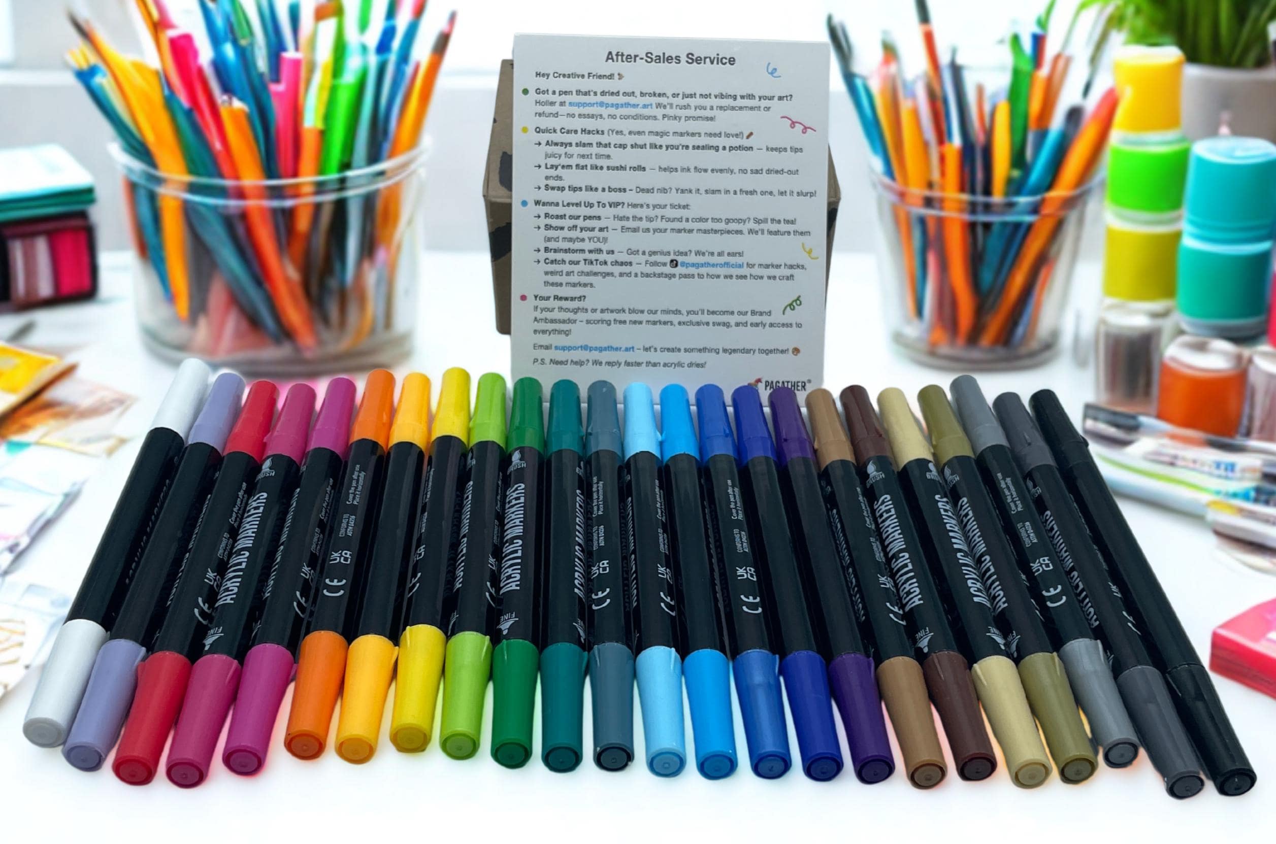 These markers are sourced from a trusted third-party brand. While I test each style for quality, Kai Scott Legacy cannot guarantee the performance of individual markers. Some pens may need a moment of “warming up”—a gentle shake or a few passes on scrap paper—to get the ink flowing.